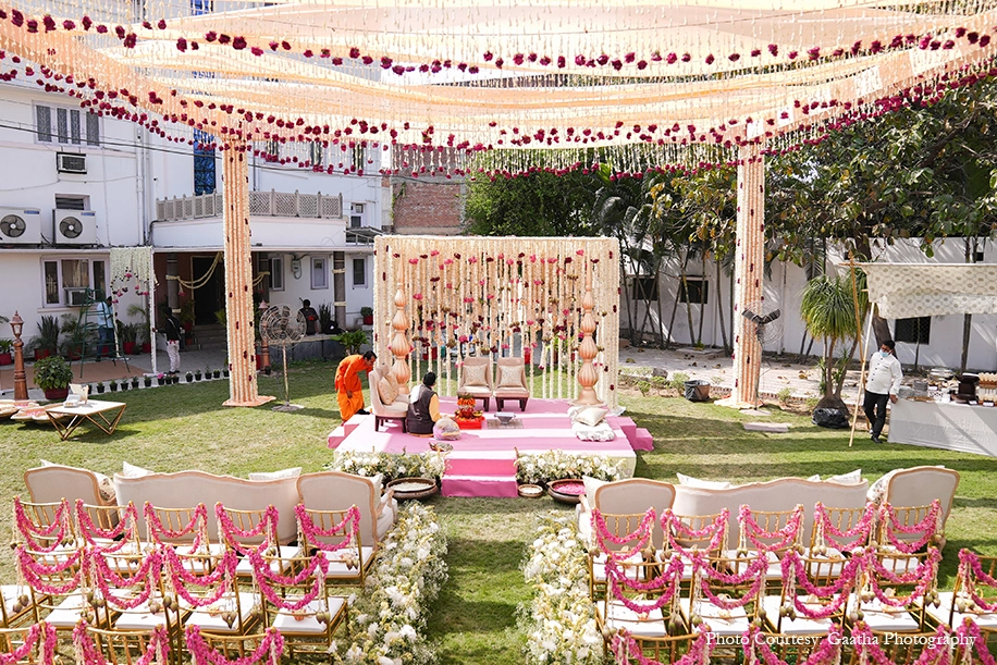 Exuding elegance within the warmth of a home, Shubhangana Joshi, and Randhir Virdi’s home-based wedding in Prayagraj, Uttar Pradesh was pure desi in flavor and blended in beautifully with the surrounding nature. Decorated and designed by WeddingSutra Favorite Mogra by Namita, each of the three events at this wedding was perfectly in sync with the couple’s vision and emanated a welcoming warmth. On the photography front, WeddingSutra Favorite – Gaatha Photography used their lenses to give the couple memories for a lifetime.