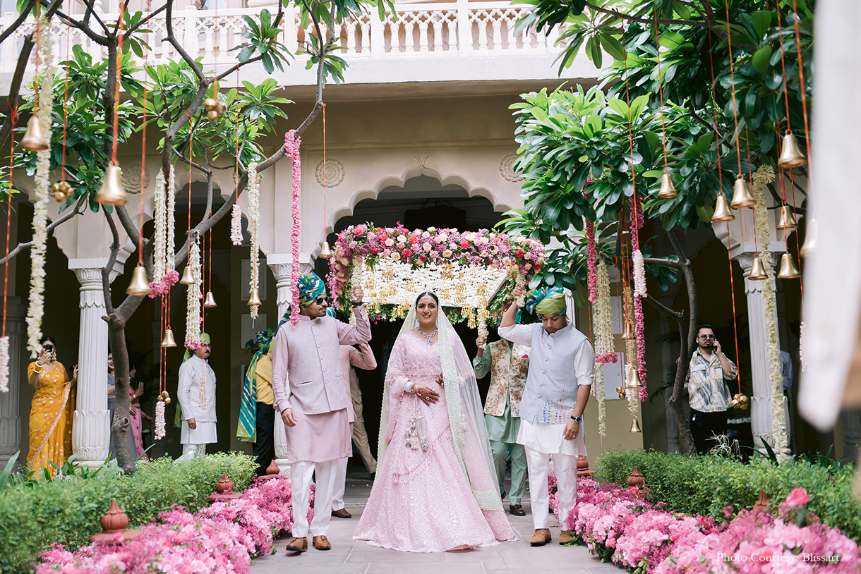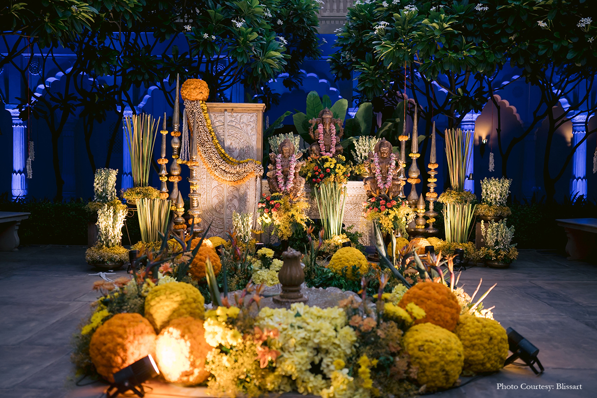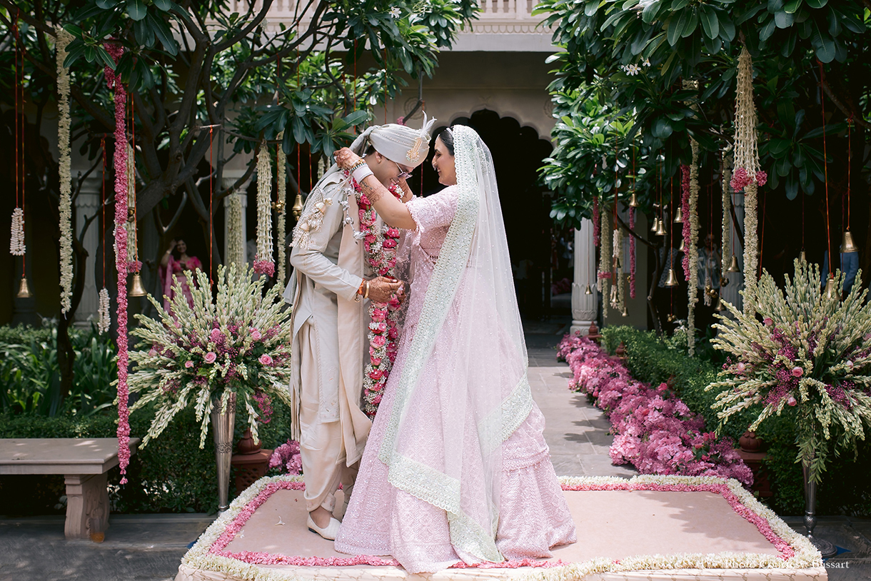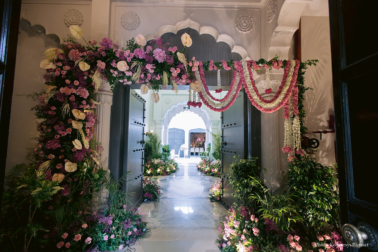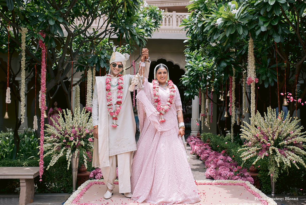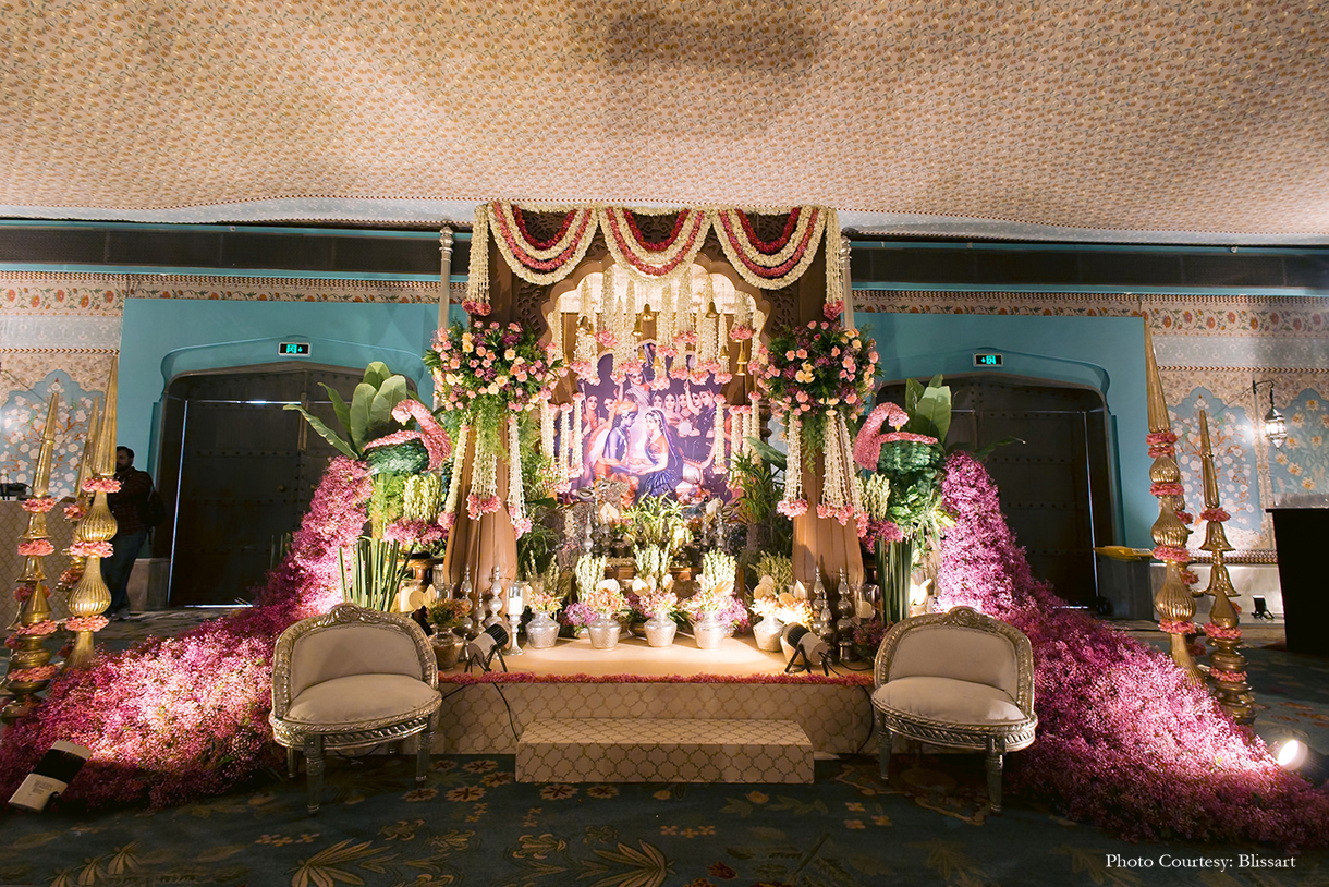 Framed by the glory and heritage of Rajasthan, this couple’s wedding was a floral extravaganza