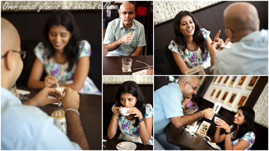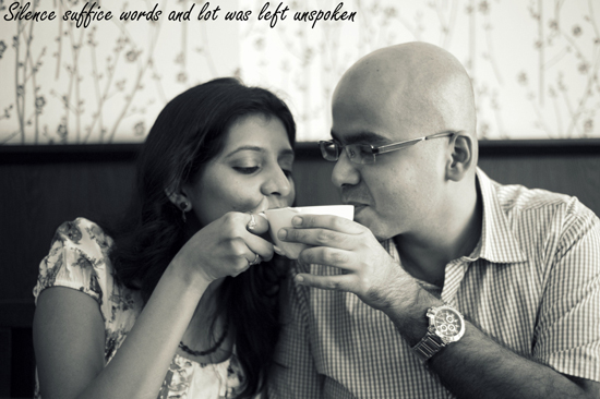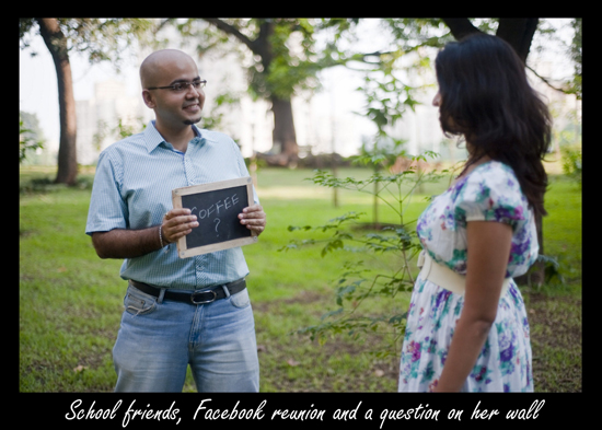 Priyanka and Dilip were keen on a pre-wedding shoot with which they could design a creative save-the-date card for friends. They got in touch with Mumbai based Candid Photographer Anamika Singh who asked them to tell her their story. Says Anamika: “Their story had elements of Facebook, reunions and many coffee dates so I conceptualized the shoot around this. The locations included a coffee shop, a park, a playground and we used lots of props. Managing it at multiple locations was challenging but I think it was worth the effort. The couple’s chemistry was great, all of us had fun and they were delighted to see their creative photo story.”