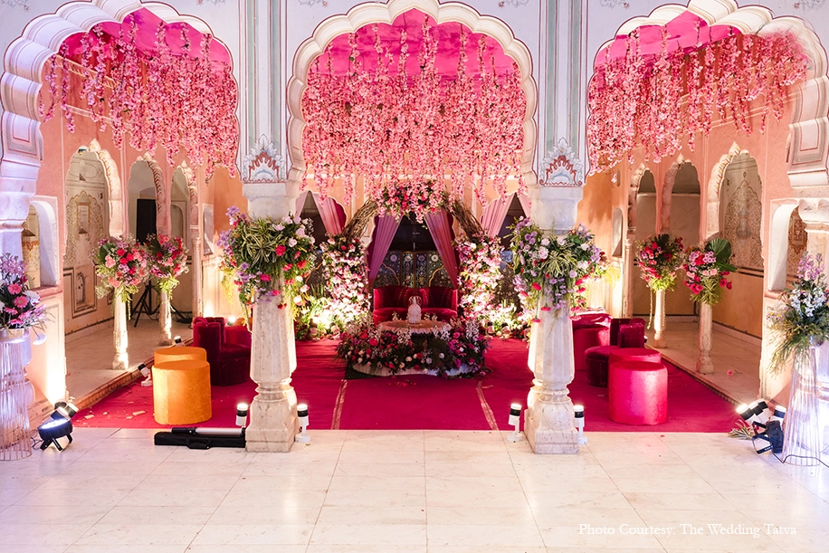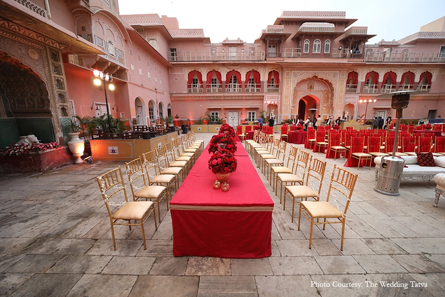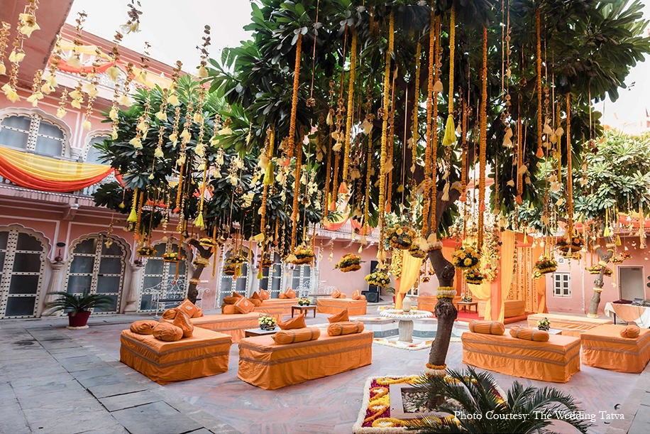 On the design aspect, we were keen on keeping everything balanced. Since the venue was a heritage hotel, we wanted its architecture to speak for itself and added elements to sync with it. Additionally, we also wanted to give the guests a taste of the Rajasthani culture since this was a destination wedding. Nikita and Chinmay were also enthusiastic about a traditional wedding. For the color palette, they leaned towards maroon, gold, yellow and orange, and we on our part ensured that these colors were incorporated in varying degrees. Once the festivities commenced, both of them handed over the reins to us, and as planners we put in all our efforts to make the event a memorable one. In Indian weddings, it’s not just about the couple but also their families. In this case, it was the same and we successfully impressed every member of both the families!”