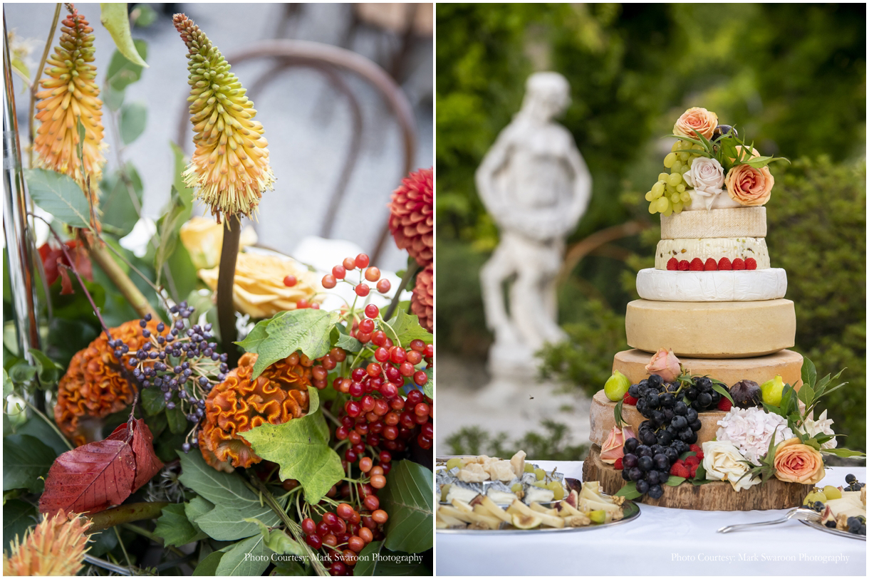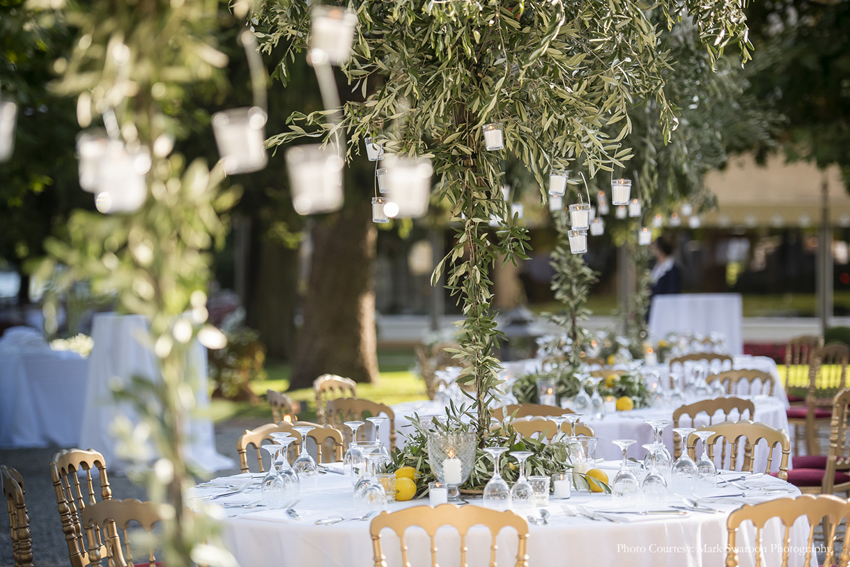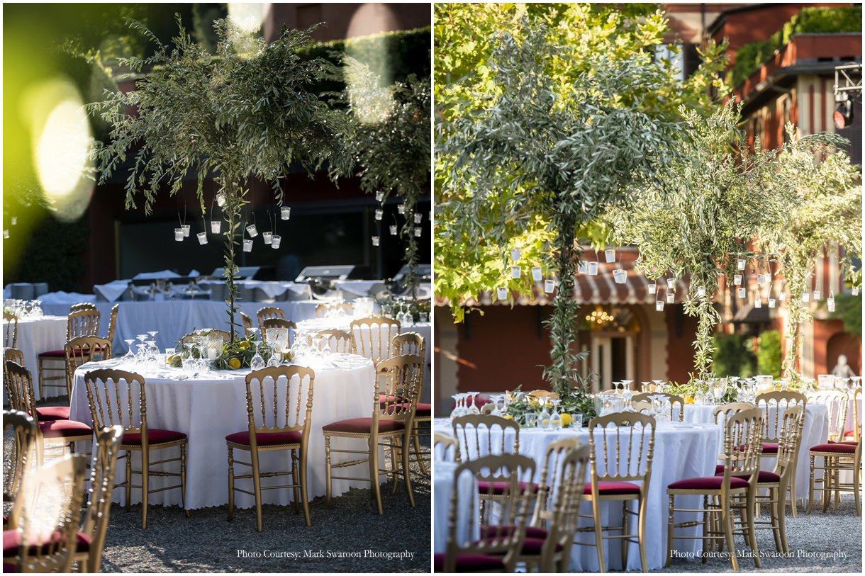 The Mediterranean welcome dinner exuded elegance, bathed in streaming sunshine and adorned with fragrant flowers, herbs, and lemons. Olive tree centerpieces, embellished with hanging candles, created an enchanting atmosphere accompanied by live music, while the cheese charcuterie cake stole the spotlight, all set against the stunning backdrop of Villa D’Este.