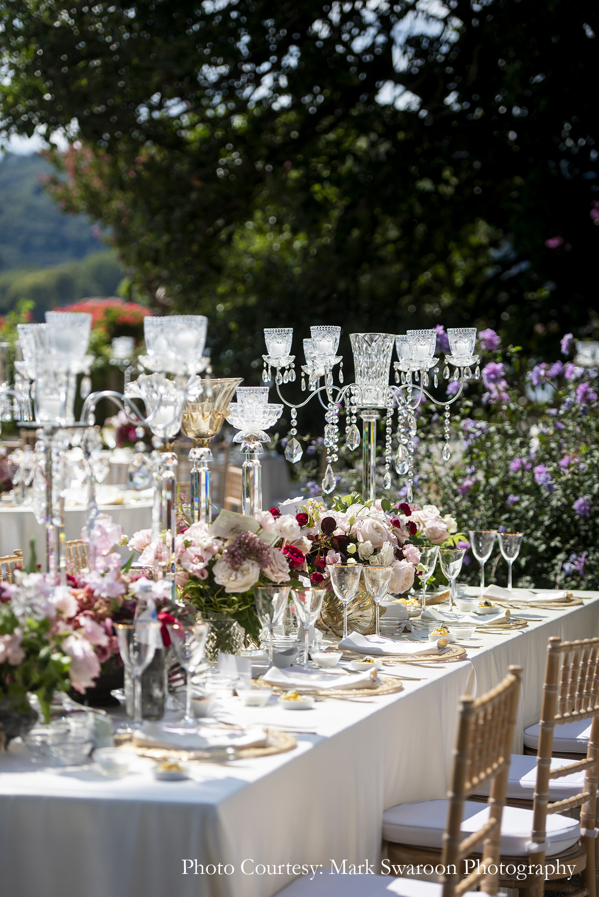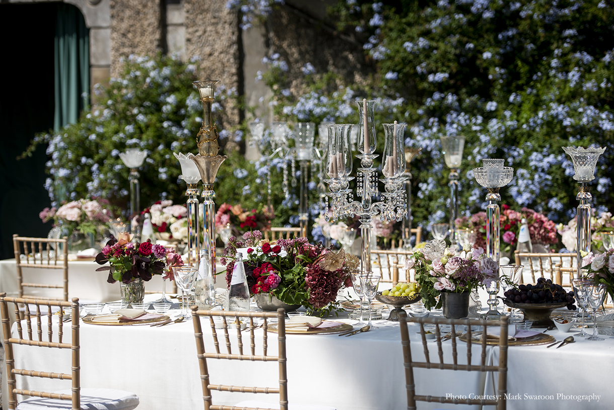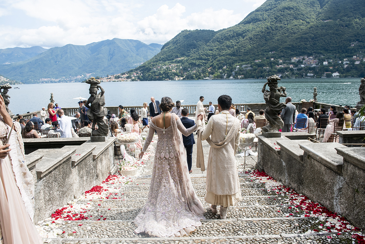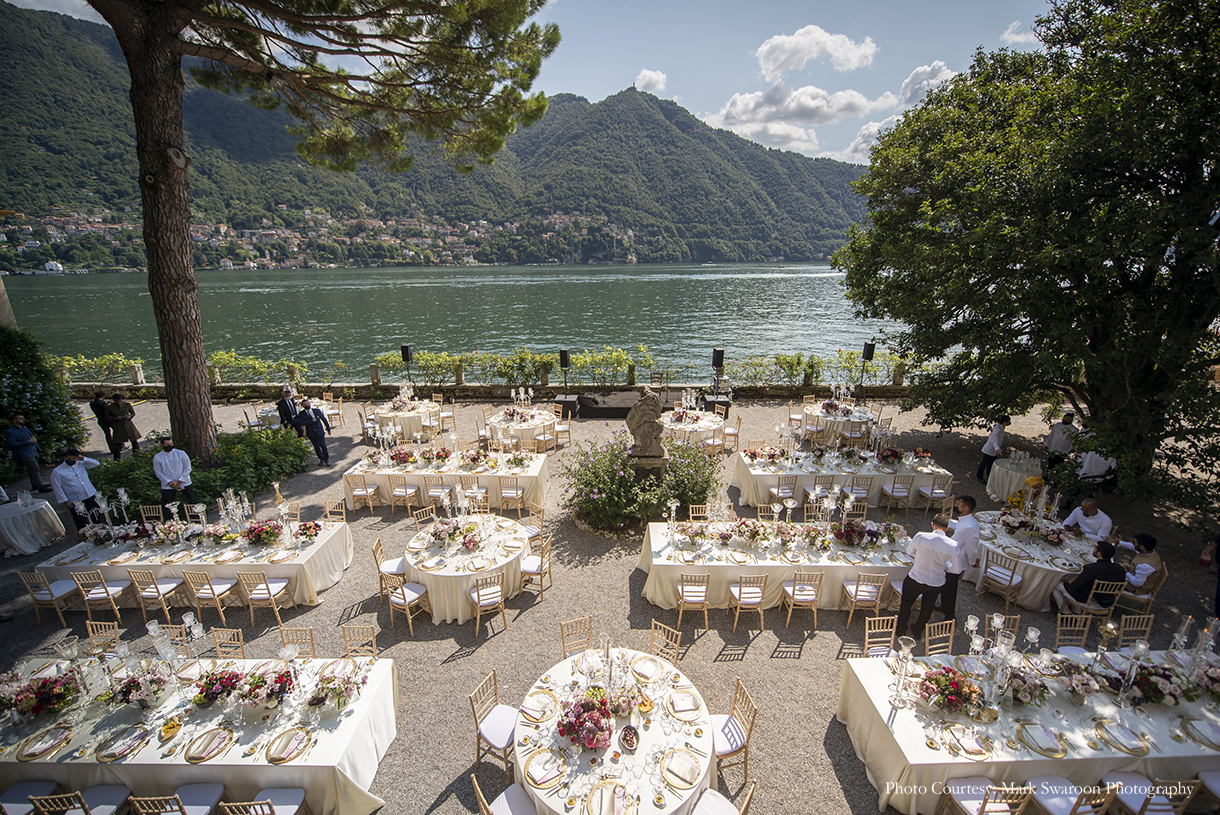 Wedding Venues: Villa D’Este (Welcome dinner), Villa Bonomi (Mehndi), Villa Erba (Sangeet), Villa Pizzo (Wedding), Villa Gastel (Reception)