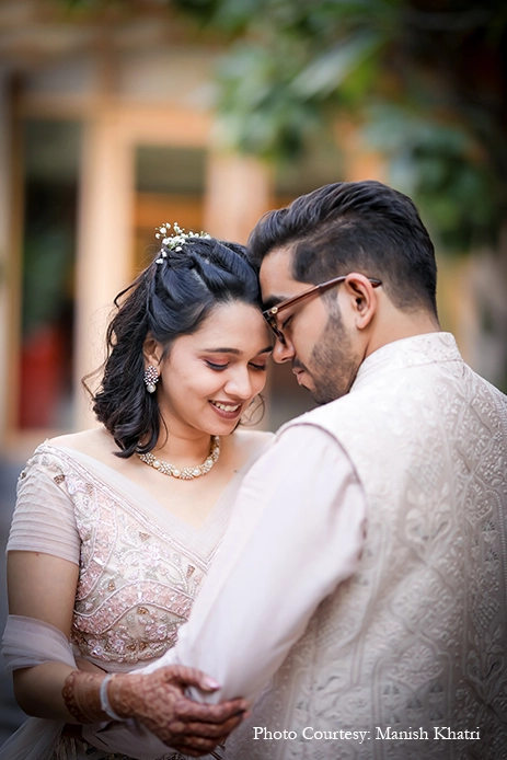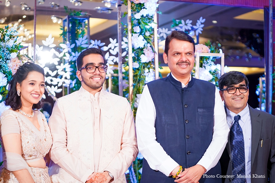 Spring blooms, tons of greenery, sleek metal props, soft lights, baby’s breath, pampas grass and more, delicately decked the ornate space of the venue. The pastel palette was reflected in the couple’s outfits. Opting to do her makeup herself, the pretty bride embodied delicate grace and looked like a breath of fresh air. The intimate soiree was attended by close friends and family, and was also graced by Maharashtra’s Ex-Chief Minister Devendra Fadnavis.