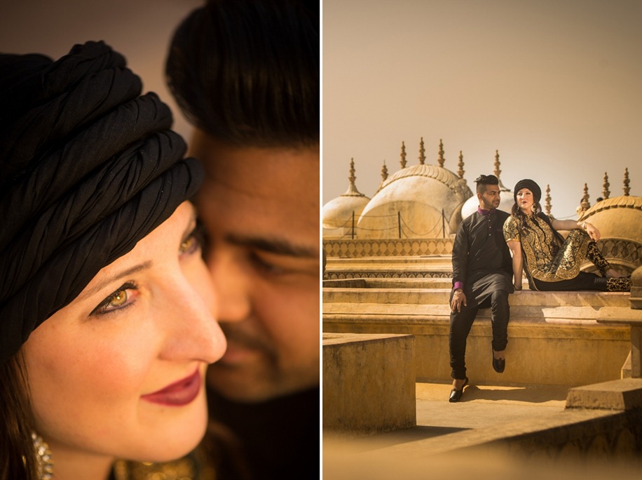 The couple travelled to India for an engagement shoot as nod to Sohan’s ethnicity and Sacha’s love for vintage glamour. Inspired by their own wonderful histories, they celebrated their #ParisToPunjab journey and their cultures coming together by creating four distinct themes around the city of Jaipur.