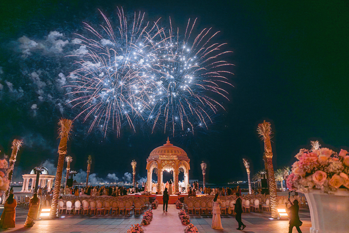 The wedding was rich with emotion – Sonya’s graceful walk with her father and Shreyans’ regal entry flanked by his parents. The night culminated in a spectacular fireworks display, casting glitter across the sky and sealing the wedding in a blaze of unforgettable beauty. “This was a celebration of cultures, memories, and identities,” reflects Bhavnesh. “Our role was to choreograph these elements into a harmonious visual symphony.”