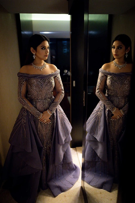 Natasha looked fierce in her statement lavender couture gown, diamond jewel and a sleek hairdo for her engagement festivities.