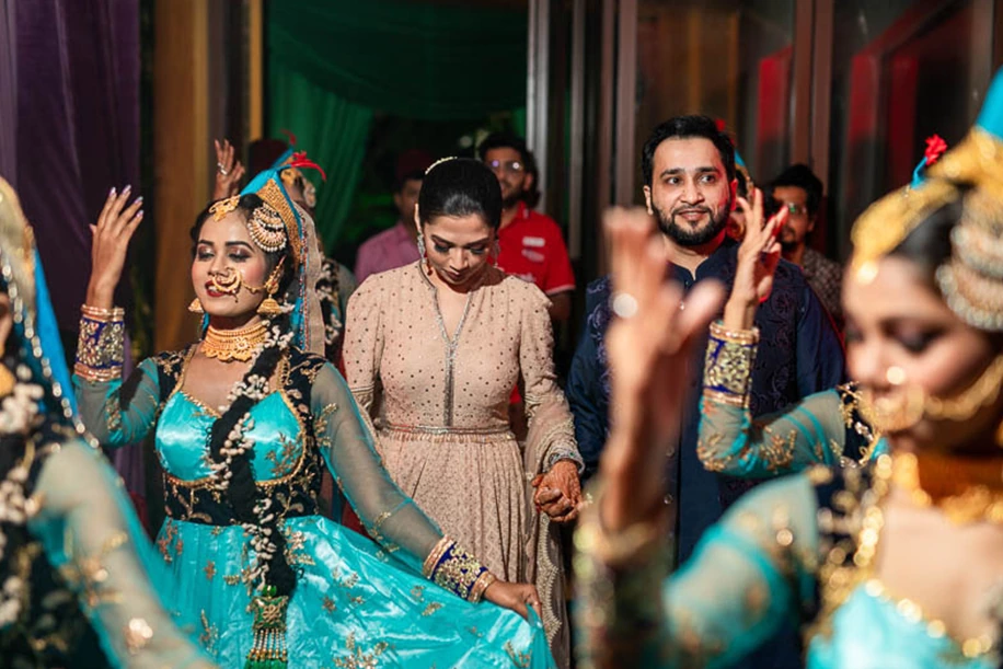 Led by graceful kathak dancers, the couple stepped into their Umrao Jaan Sangeet night.