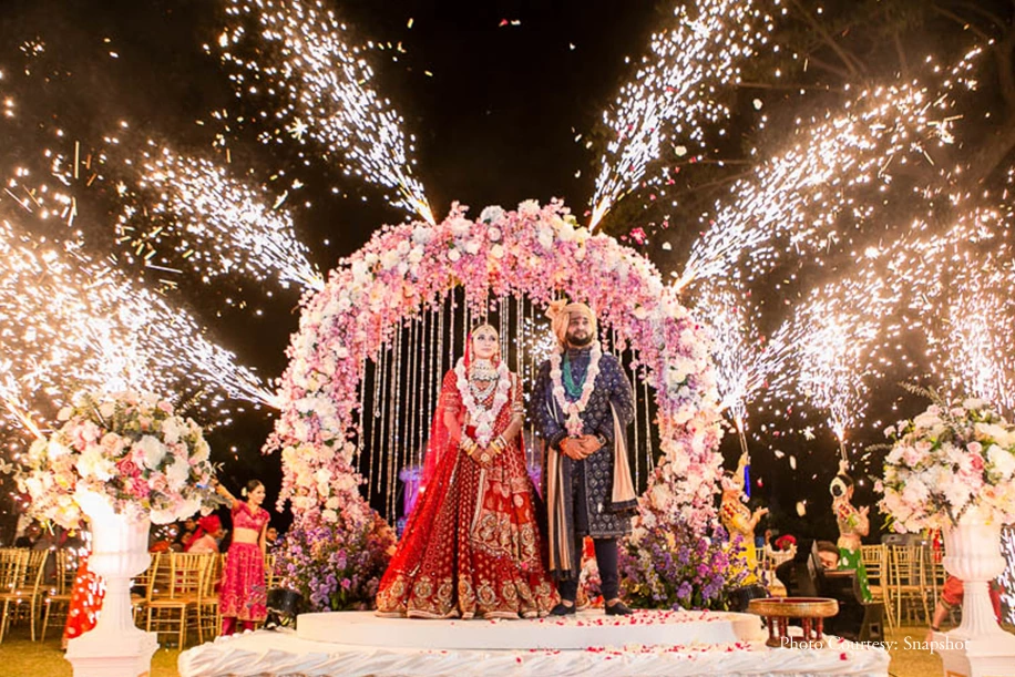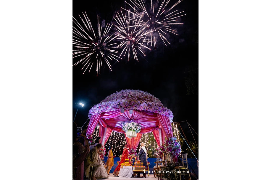 Fireworks lit up the sky as the bride and groom took their solemn vows.