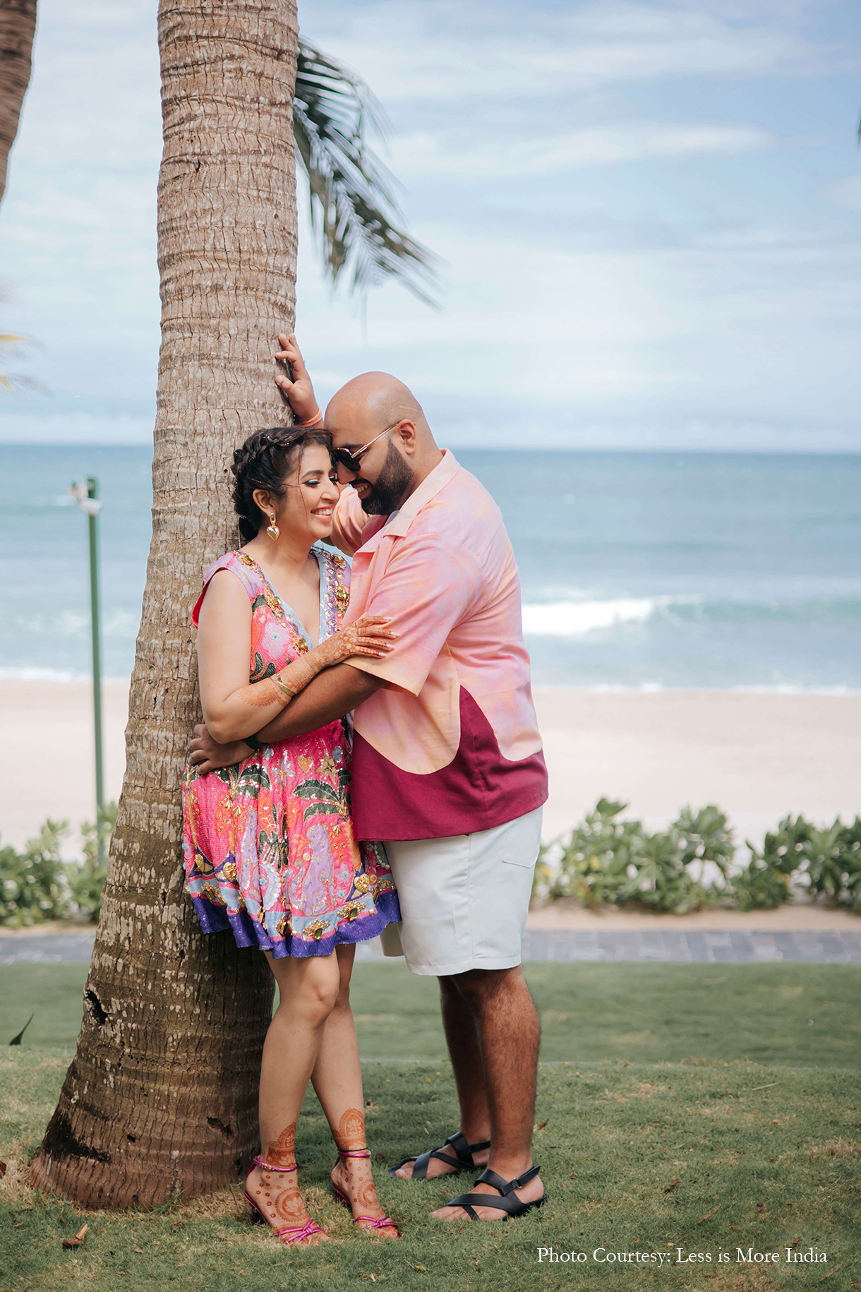 Hosted by the property’s vast pool, the mehndi party was an absolute stunner with its pink, purple and lavender hues. Hosted at the Poolside Garden which gave one a sweeping view of the Non-Nuoc Beach and the plethora of palm trees, the mehndi gave guests a picturesque view of the landscape. The couple made a dashing entry to the burst of colorbombs and later enjoyed basking in the sunshine as their loved ones shook a leg to their favorite beats.