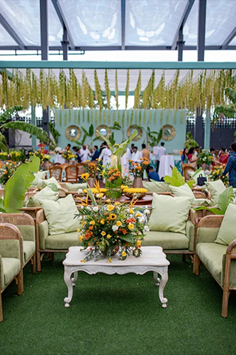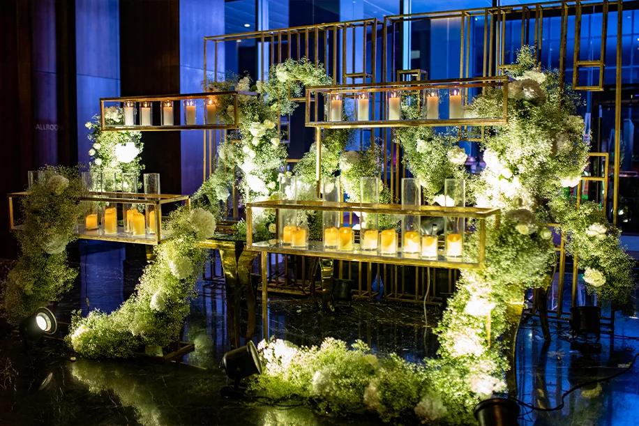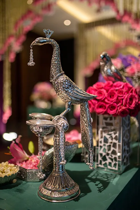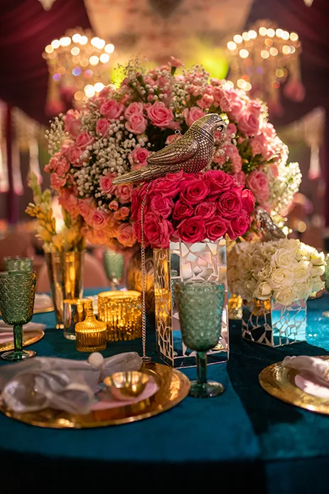 The auspicious theme of ‘ShubhAarambh’ adorned the Welcome Dinner and Mehndi, kicking off the festivities with a fitting start. The evening wove tradition with edgy elegance with the decor of vibrant florals, ornate animal statuettes in silver, crystal table elements, and bright furnishings. The alluring touch of Sufi music completed the artistry that was this night!