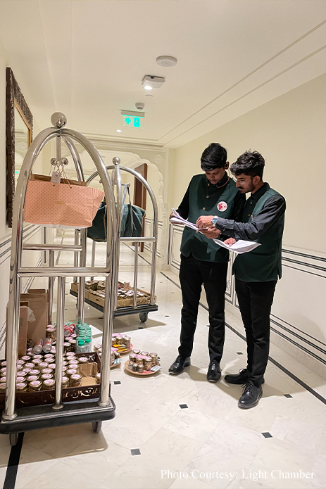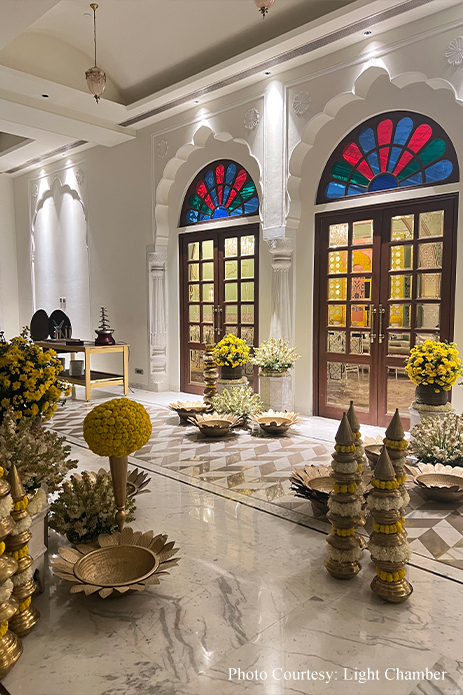 Bringing together loved ones from different countries and cultures, the couple wanted each of their guests to be pampered and shown appreciation for their presence, and Team Festal pulled out all the stops to do so. Be it smooth arrivals and departures or round-the-clock hospitality, Team Festal ensured a flawless stay experience for all their guests. The guest hampers with beautiful hand-painted wooden plates topped with delicious munchies were personally delivered to all guests, while ritual managers ensured all their overseas guests enjoyed and understood the rituals to feel included. Needless to say, they were awe-struck with the grandeur and welcome they received, as well as the warm hospitality and colorful celebrations that filled every moment of the wedding.
