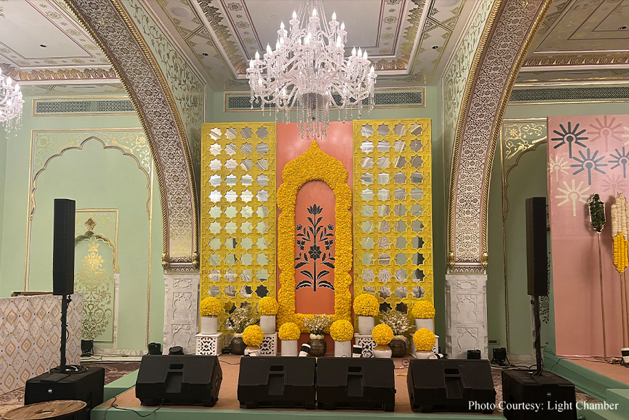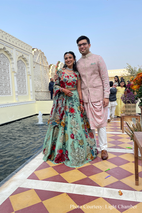 A perfect reflection of their love story, their wedding at the stunning Hyatt Regency Jaipur Mansarovar blended the traditional with the modern seamlessly to craft a memorable experience for their Indian and overseas guests. From the lively and vibrant haldi and mehndi that were imbibed with flavors of North India to the dreamy starry-night-themed Sangeet, every function saw distinct themes, decor, and entertainment.