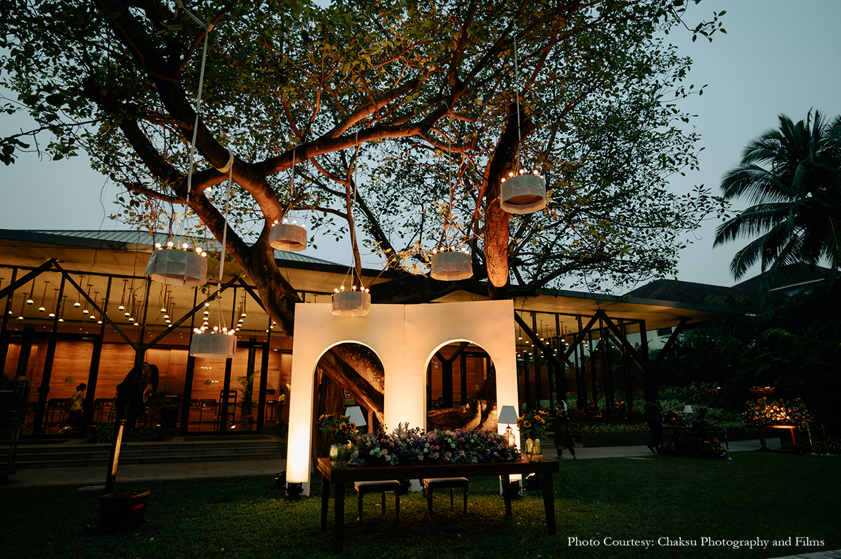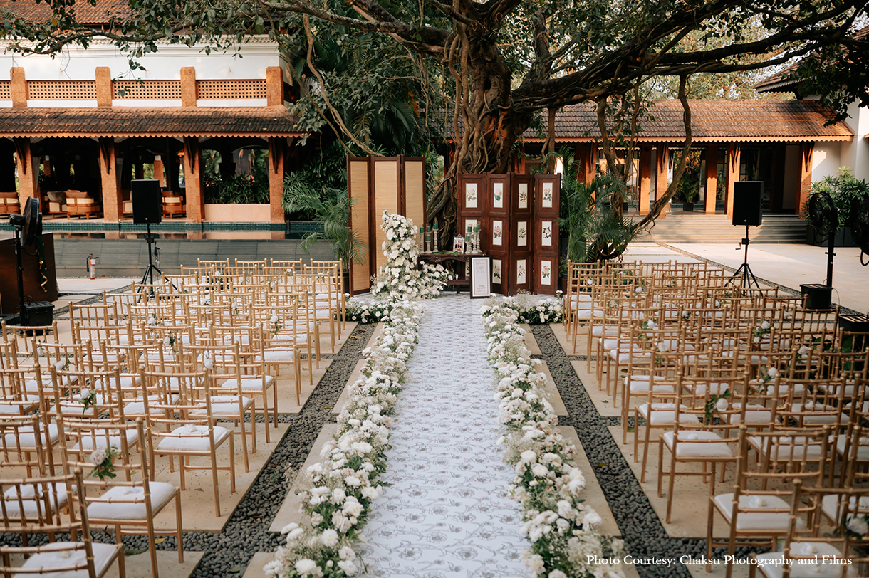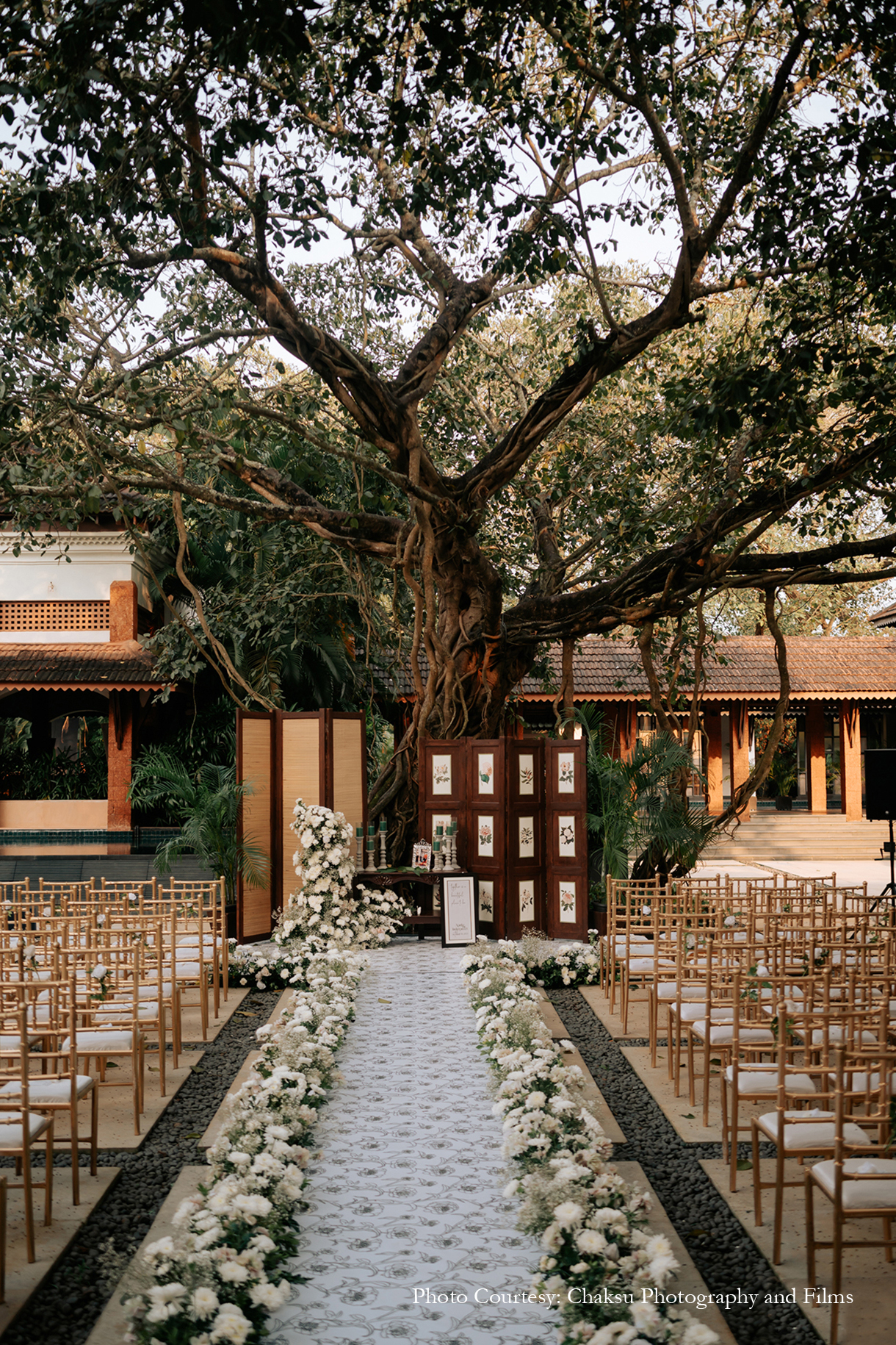 Hosting their wedding in the exotic paradise of Goa, the couple chose the contemporary Goan architecture and lush green surroundings of Alila Diwa Goa as the backdrop. With 118 well-appointed rooms and suites, large courtyards, pools, patios, and multiple indoor and outdoor spaces, all of which are nestled amidst the backdrop of the natural tropical landscape, Alila Diwa Goa was the perfect choice for an unforgettable celebration.