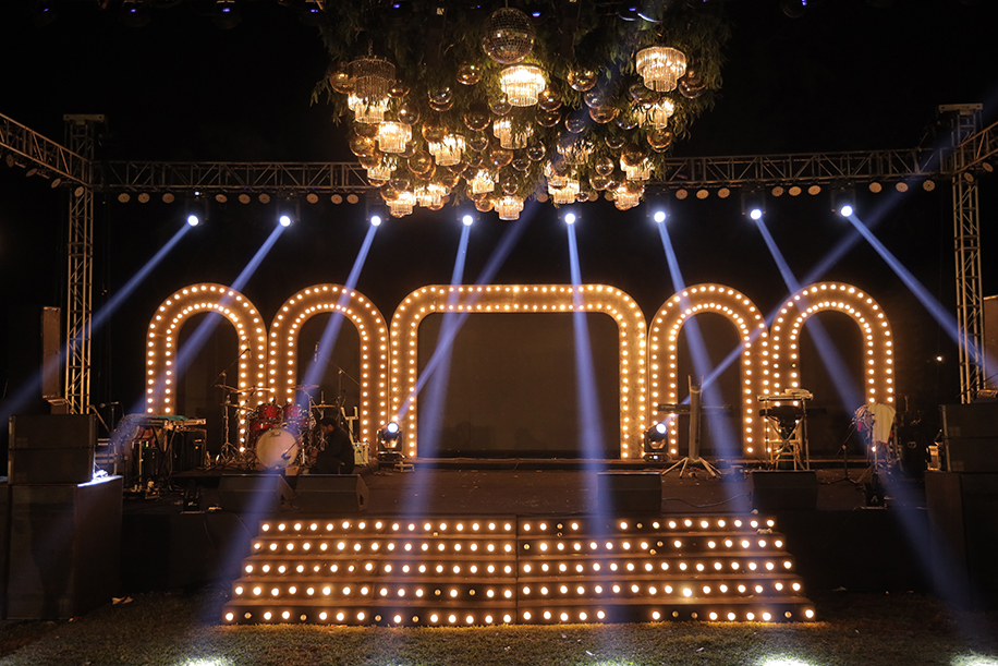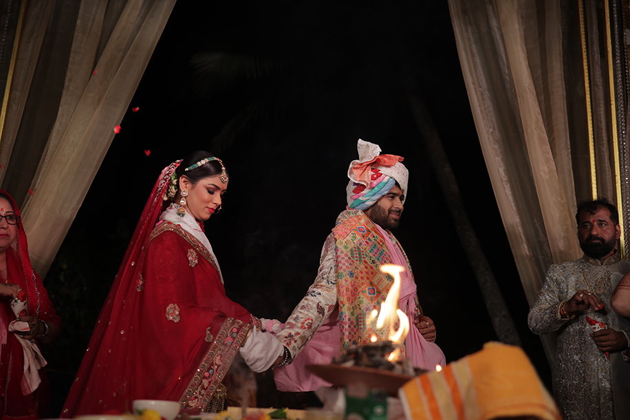 As evening fell, the wedding party geared up for a disco-themed sangeet swathed in hues of emerald green bathed in golden light. The groom’s performance onstage had everyone cheering and Bollywood tunes by Gurdeep Mehendi kept the night lively. Following this, the neon-themed after-party was just as glamorous with a DJ keeping the dancefloor occupied well into the night.