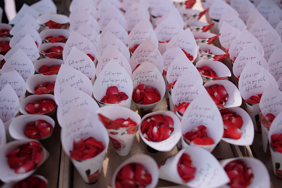 For the night, the couple decided to host an unconventional reception dinner themed around Valentine’s Day. Raj Batra from Mosiac Events By Raj Batra shares, “The decor flaunted a red and gold color palette. Kissing booths, candy corners and a live singer ensured it was a romantic celebration. Couples swayed to the music while the exquisite spread had everyone indulging freely.”