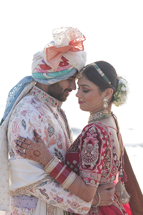 Bride’s Outfits: G3 NXT (Carnival), Gaurav Gupta (Sangeet), Amrut (Wedding), Kalki Fashion (Reception)
