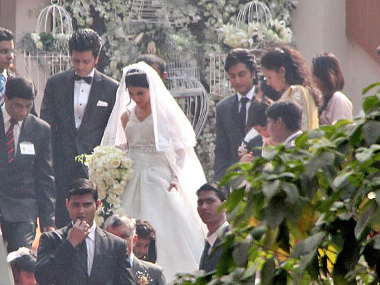 Riteish and Genelia’s Christian wedding was held at a Bandra Church the day after the Maharashtrian Wedding. The ceremony was a very private affair for close friends and family members only. Genelia wore a Shantanu & Nikhil gown and Riteish a black suit.
