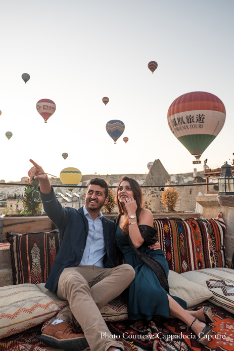 The fairy chimneys of Cappadocia in Turkey are known for their striking looks that also offer spellbinding views. These tall iconic rock formations house a number of inns and hotels which make for a unique experience. Sahil chose this enchanting region to propose marriage to Alifiya, here he tells us about their love story and how he went about planning the perfect proposal.