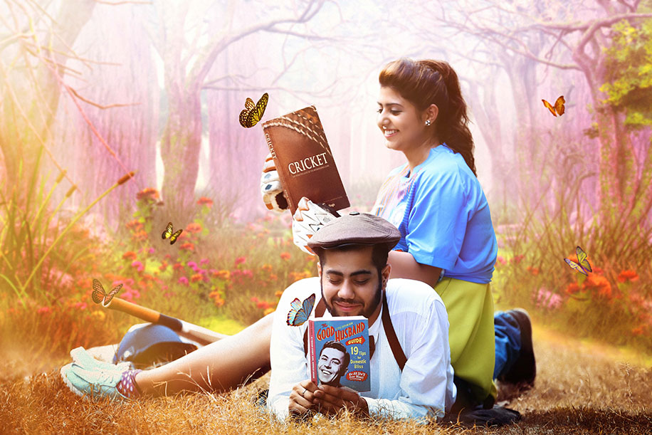 There’s no better way to add some pizazz to your pre-wedding photoshoot than with a luscious dash of Bollywood! Pawan and Meghna picked an inspiration board from Anil Kapoor and Sridevi’s look in the film ‘Mr India’ to portray their own quirky romance. In another shot that is both witty and pretty, “Pawan reads “A Guide To Becoming a Perfect Husband” while Meghna relaxes with a book on cricket”, Anish says.