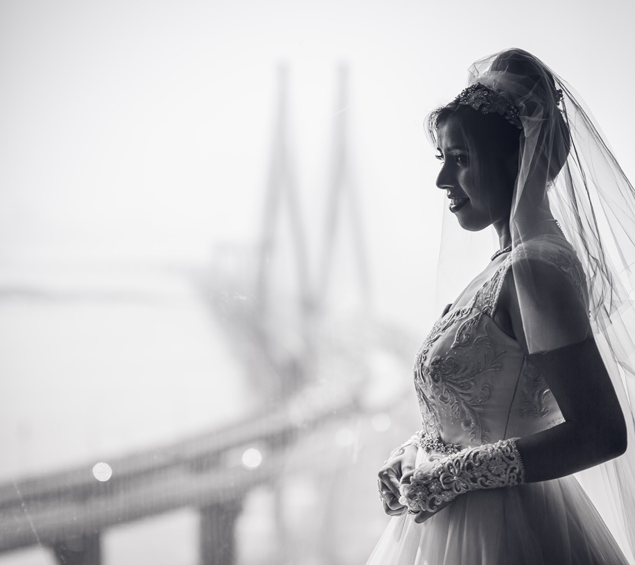 Photographing a bride like Carolin was a treat for me. While she was extremely particular about each and every element at the wedding, she never once lost her composure. When I walked into her bridal suite at the Taj Lands End, “Woww!!” was my involuntary reaction. Carolin had chosen the perfect room, overlooking the span of the magnificent Bandra-Worli Sea Link. I remember her saying, “The view from here calms me” – no mean feat for a bride two hours shy of walking the aisle. The suite was perfectly lit. Her bridal gown and shoes were laid out and I knew exactly how to document them.