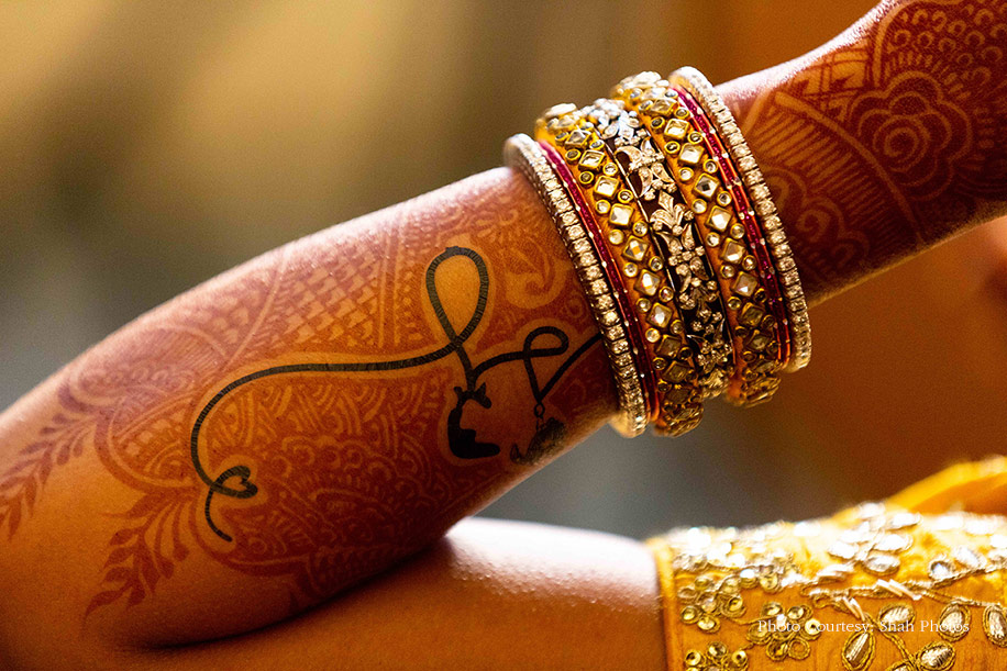 Their mehndi function incorporated all things the couple fancied from cricket, coke, and fries to a tattoo artist who drew a semi-permanent design depicting their wedding logo that was integrated with the mehndi and stood out with its black color. All the boys in the family got ‘JAYHO’ painted on their palms, so when everyone did the namaste to welcome the guests, they would see the wedding hashtag.