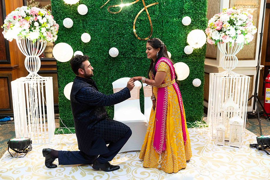 Jay and I were acquaintances and met for the first time through a common friend. A few years down the line, when our mediator friend got engaged, I went to meet him to catch up on all the details. Right then, his phone rang, and Jay’s name flashed on it. I received the call and requested him to join us for lunch and pull our friend’s leg for not inviting us for his engagement, and that’s when we hit it off instantly. We met again for the second time when our friend wanted us to meet his fiancé. We both sat quietly in different corners since we hardly knew anyone there, and Jay swapped his seat and sat with me to ensure I was comfortable. We kept in touch post that, and later, he confessed his feelings. The rest is history.”