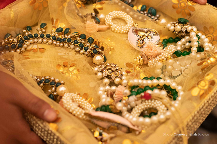 Bride’s Outfits: JD Designs, Mumbai (Sangeet, Wedding); Ancestral lehenga (Bhaat)