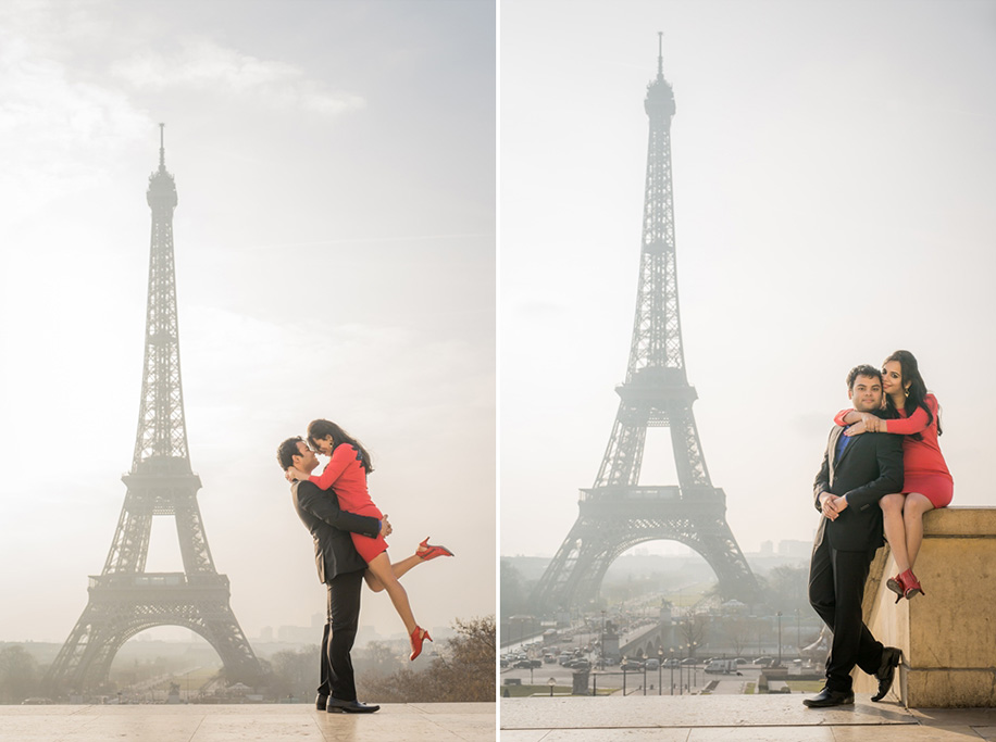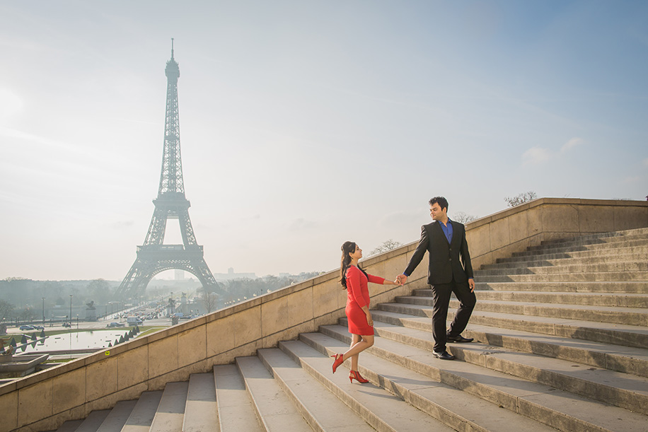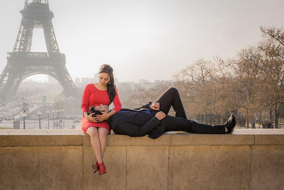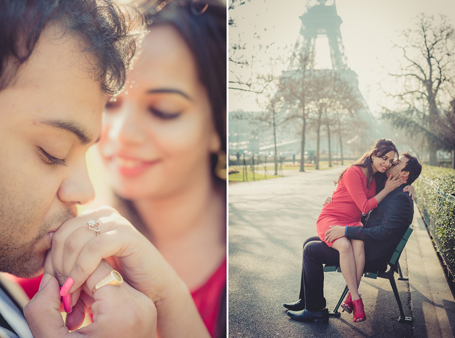 He told me he wanted to shoot at the Trocadero because it has a gorgeous garden and has a direct view of the Eiffel Tower. He even hired a professional photographer, Pierre Torset and told him he was going to propose. On the day of the shoot, Pavan presented me with a beautiful dress and asked me to accompany him to a romantic photoshoot at the Eiffel Tower. I was delighted but had absolutely no idea there was another agenda for the day. We met Pierre Torset who was easy going and made us both feel very comfortable during the shoot. During one series of clicks, Pierre insisted Pavan go down on one knee and Pavan did as he was told. Then, he said he loved me and I thought he was joking and told him to concentrate on the shoot so we’d get better pictures! And that was the exact moment when he took the most beautiful ring from his pocket and proposed to me.