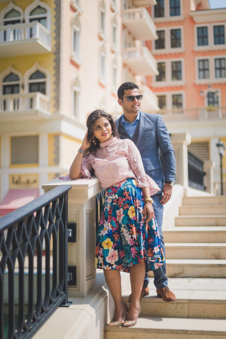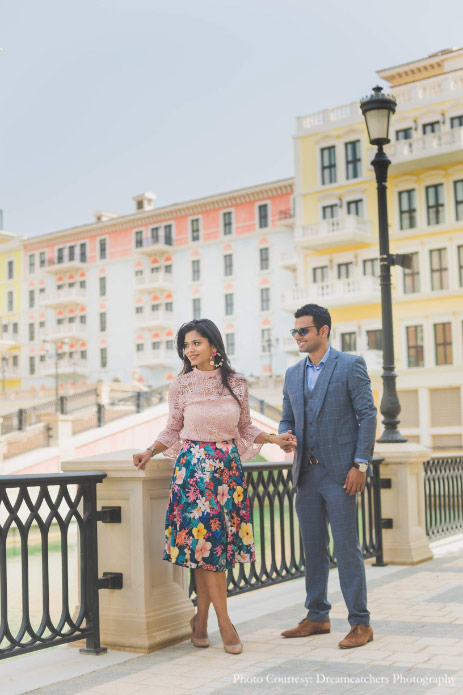 Kimberly shares, “Doha in Qatar was the place where we first met and that’s exactly where we wanted have our pre-wedding photoshoot since it was incredibly close to our hearts! The entire experience was just amazing! We had such a fun time enjoying the hidden gems of the city together that it didn’t even feel like a photoshoot. The heady mix of romance, glamor and serenity can be clearly seen in the pictures. Not only do we share an emotional connect with this destination but we also love the sheer beauty of it.”