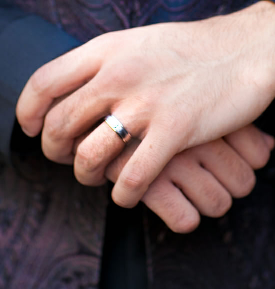 The stylish wedding band is crafted in platinum with centre diamond of 11 cents.