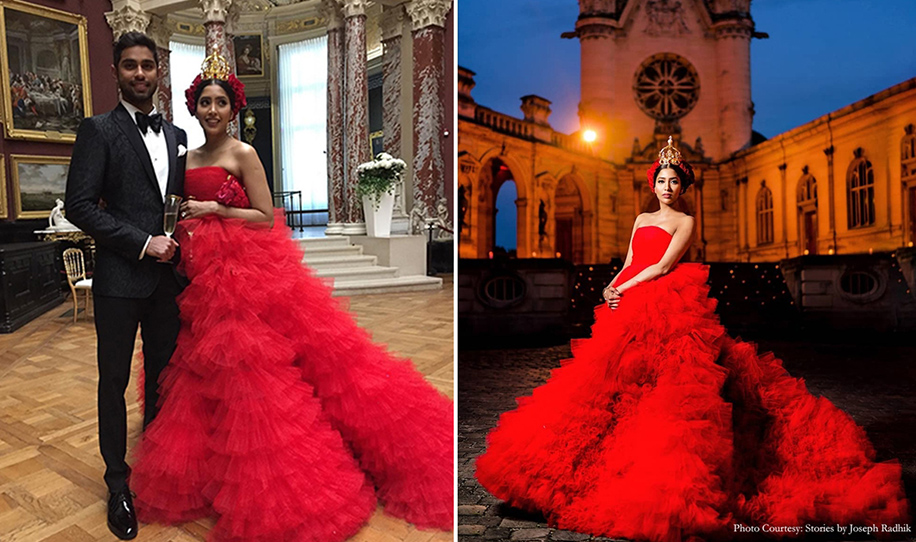 While the couple’s pre-wedding celebration at the magnificent Château de Chantilly in France was designed by couturier Tarun Tahiliani along with scenographer Sumant Jayakrishnan, we hear the celebrations in Hyderabad will be designed by Dinaz Noria and managed by Dhaval Chandarana of WED Gurus. For the masked ball at the Chantilly Palace, Shriya wore a dazzling red Giambattista Valli tiered gown and a golden crown. Those in the know are predicting the bride will wear her favorite designers, Elie Saab, Tarun Tahiliani and Marchesa for the different wedding functions.