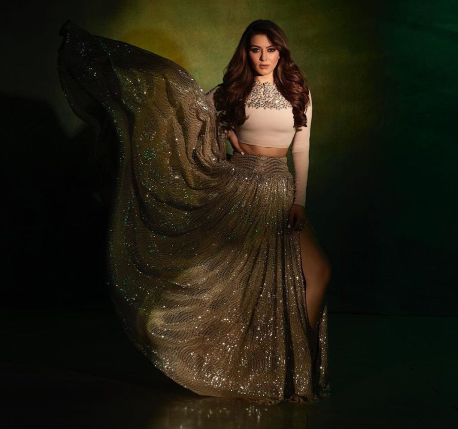 Hansika Motwani’s high slit lehenga is a great modern vibe for Bridesmaids