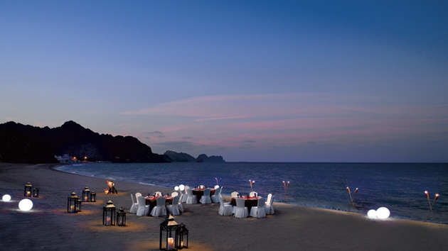 Tucked away between the rugged Al Hajar mountain range and the Sea of Oman, Al Bustan Palace, a Ritz-Carlton Hotel is a hidden jewel amongst Muscat hotels, a beachfront retreat that welcomes guests with customs steeped in ancient traditions and contemporary comfort. From each of the 250 guest rooms and suites’ private balconies, you can gaze upon magnificent mountain, sea or garden views. You can relax on the pristine stretch of private beach or dine on its sandy carpet under the stars, in one of the three distinctive restaurants. Perfect for honeymoons or romantic getaways, Al Bustan Palace provides all the ingredients that will stir memories for a lifetime.