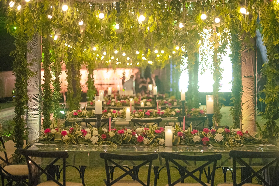 Neha Mehrotra, Founder of Delhi-based Foreign Wedding Planners, gave us some insight into the curation & designing of the affair. “Aman wanted a celebration that would be very experiential and memorable for his guests. While we initially researched venues in Delhi and Gurgaon for ease of travel, Rambagh Palace, Jaipur just ticked all the right boxes. The exquisite property offered luxurious hospitality, scenic backdrops and a variety of outdoor venues, all of which completely fit the bill for what Aman envisioned. All he asked for was a lively, fun destination getaway for him and his loved ones, and gave us free rein to use our creativity, which was incredible”!