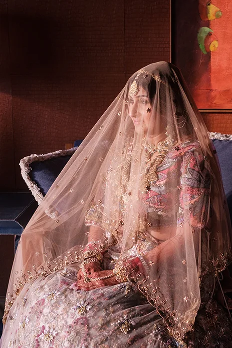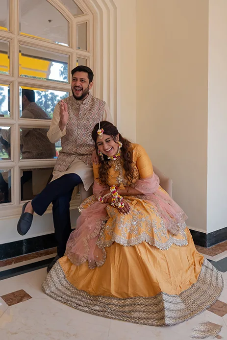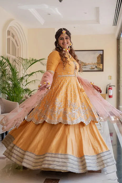 The haldi ceremony was an emotional celebration of Namha’s Punjabi roots, complete with gota bangles, kaleerein, and the head cover from her mother’s wedding trousseau. The vibrant decor for the occasion was inspired by the multi-cultural life of Cyprus, with Greecian doors and Indian elements coming together in a stunning fusion.