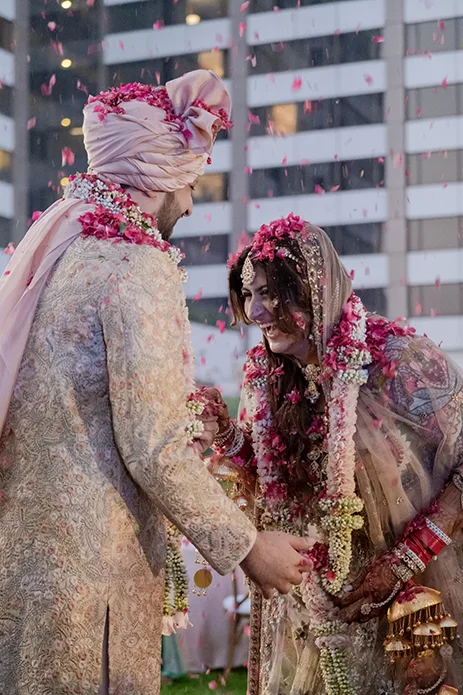 To honor their parents and their respective heritage, the couple designed the wedding ceremony to fulfill their vision, incorporating Punjabi and Parsi traditions. Surrounded by tropical greenery and refreshing elegant decor, the couple tied the knot amidst great cheers and showers of flower petals.