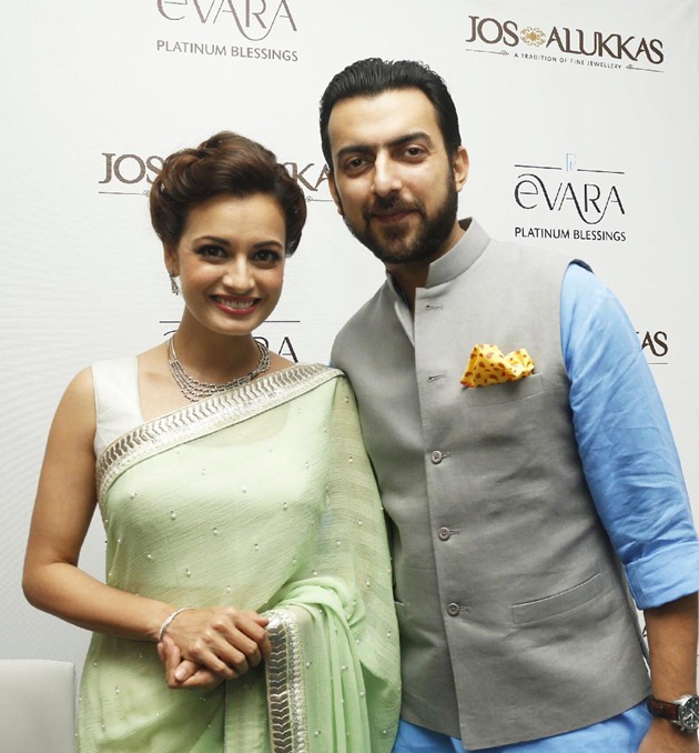 The newlywed beautiful Bollywood actress Dia Mirza was in her hometown, Hyderabad with her husband, Sahil Sangha to receive blessings of everlasting love from her mother Deepa Mirza. The couple celebrated their vows of love and the mother Deepa Mirza showered blessings on them with Platinum Evara jewellery at the Jos Alukkas store in Hyderabad. The couple also unveiled the exciting new wedding jewellery range of Evara Platinum Blessings that has been designed keeping in mind what appeals to the modern bride and groom.