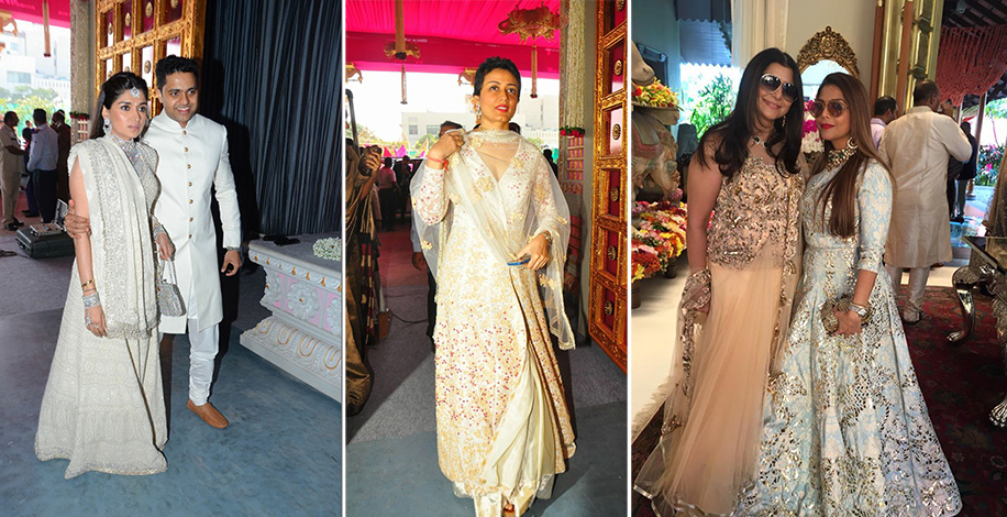The bride’s ensembles were designed by Abu Jani, Sandeep Khosla while the groom’s wear was by Raghavendra Rathore.