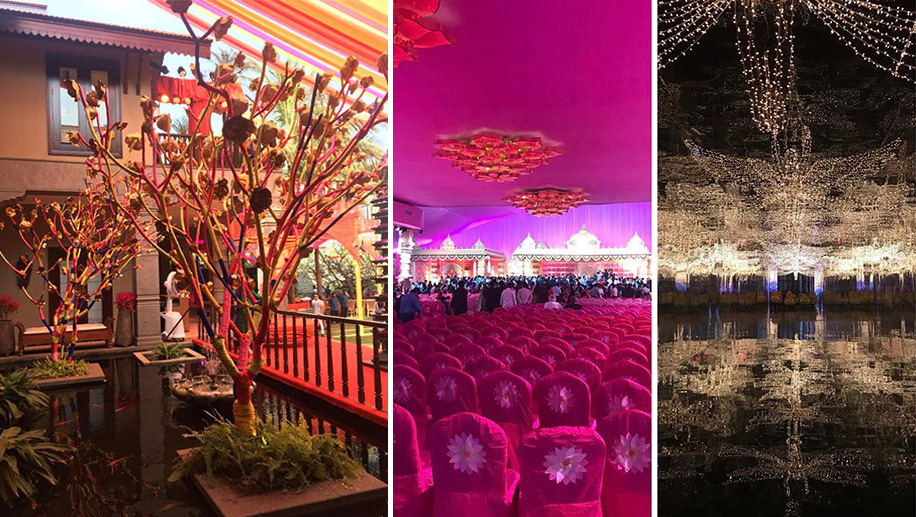 The mehndi ceremony at the Reddy residence played out in a carnival-like atmosphere, the sangeet at the GMR Arena at Shamshabad had a heavenly theme filled with lights arranged to look like angels. The temple-themed decor for the muhurtam (traditional wedding) at the same venue was of course, grand and ornate. The post wedding reception was held at the Park Hyatt.