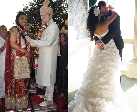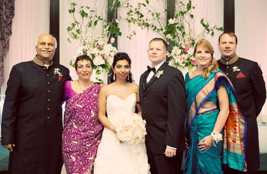 The engagement took place in January last year– a simple affair at the US Consul General’s regal residence then situated at Bhulabhai Desai Road. Chris and Janavi had two weddings- on July 30th 2011, at the 36th floor of the Chase Towers, at the Petroleum Club in Oklahoma City. The second wedding was on January 5th in Mumbai, an intimate traditional affair followed by a grand reception. Says Janavi: “One of the reasons we hosted the wedding at Thackers in Birla Krida Kendra, is because their vegetarian food is outstanding. Also the weather was beautiful, and the location perfect for an open-air reception. The decor was designed by my mum and the Wedding Planner Keyur Shah, simple floral arrangements, lots of white flowers with lights.” The couple bought their wedding ensembles from Sheetal@ Grand Road, Mumbai. Janavi’s reception outfit, a yellow net saree was from Aza, the multi-designer store at Altamount Road.