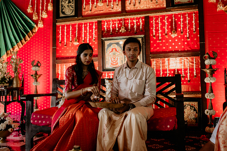 Influenced by the aesthetics of Chettinad, this couple’s wedding ceremony was earthy and majestic