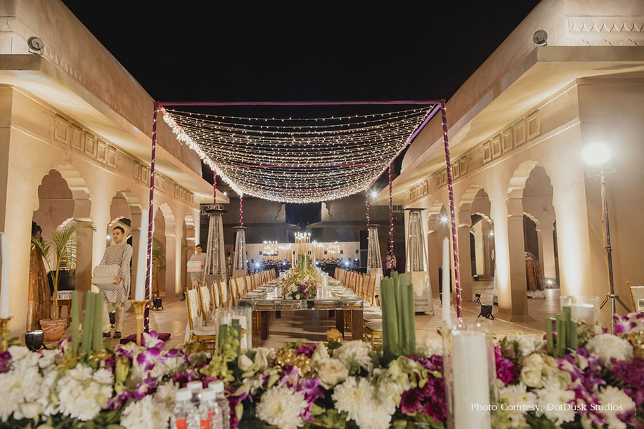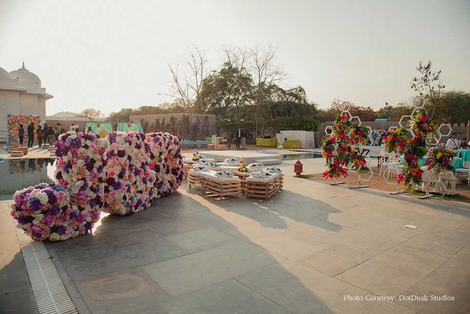 Handling the colossal task of planning, conceptualizing and executing this destination wedding, Swaaha Weddings & Experiences looked into every detail with pinpoint precision and creativity. Hemant Kale, director at Swaaha Weddings and Experiences, shares, “Our aim was to blend the requirement of the couple and their respective families to create a wedding that everyone, regardless of age, would enjoy. Keeping this in mind, we went ahead and conceptualized seven thematic events that were hosted over three days.” On the photography front, the duo chose WeddingSutra Favorite – DotDusk Studios who captured all the fun and candid feelings in beautiful frames. Adding to the team were anchor Jay Karmani, DJ Shadow Nakash Aziz, and Dharini Thakkar who kept everyone entertained.