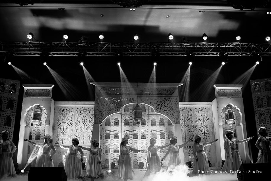 A Sufi-themed event that was replete with elements that showcased rich Arabic culture, the mehndi was an interactive event where guests could browse through stalls that offered block printing, customized fragrances, and other trinkets that the guests could take home as souvenirs. With elements like comfortable Arabic majlis (seating places) and mashrabias (a window or doorway decorated with ornamentation made in carved wood or stone) that exuded distinct Moroccan vibes, this event also saw performances by Sufi dancers and tanoura artists.