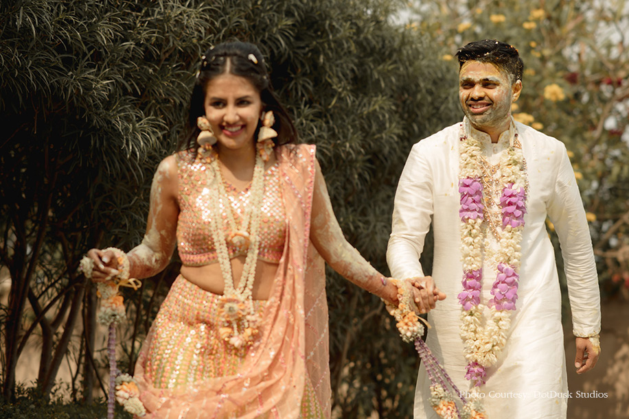 With the palatial architecture of Jaipur serving as the perfect backdrop, Disha and Jay’s nuptials reflected their unique tastes and personalities. Designed, conceptualized and executed by WeddingSutra Favorite – Swaaha Weddings & Experiences, the wedding celebrations were a feast for the senses.