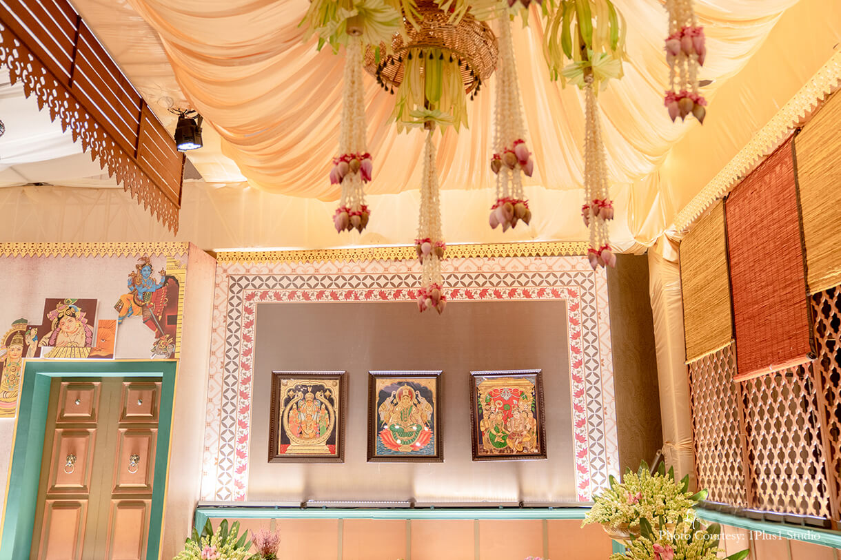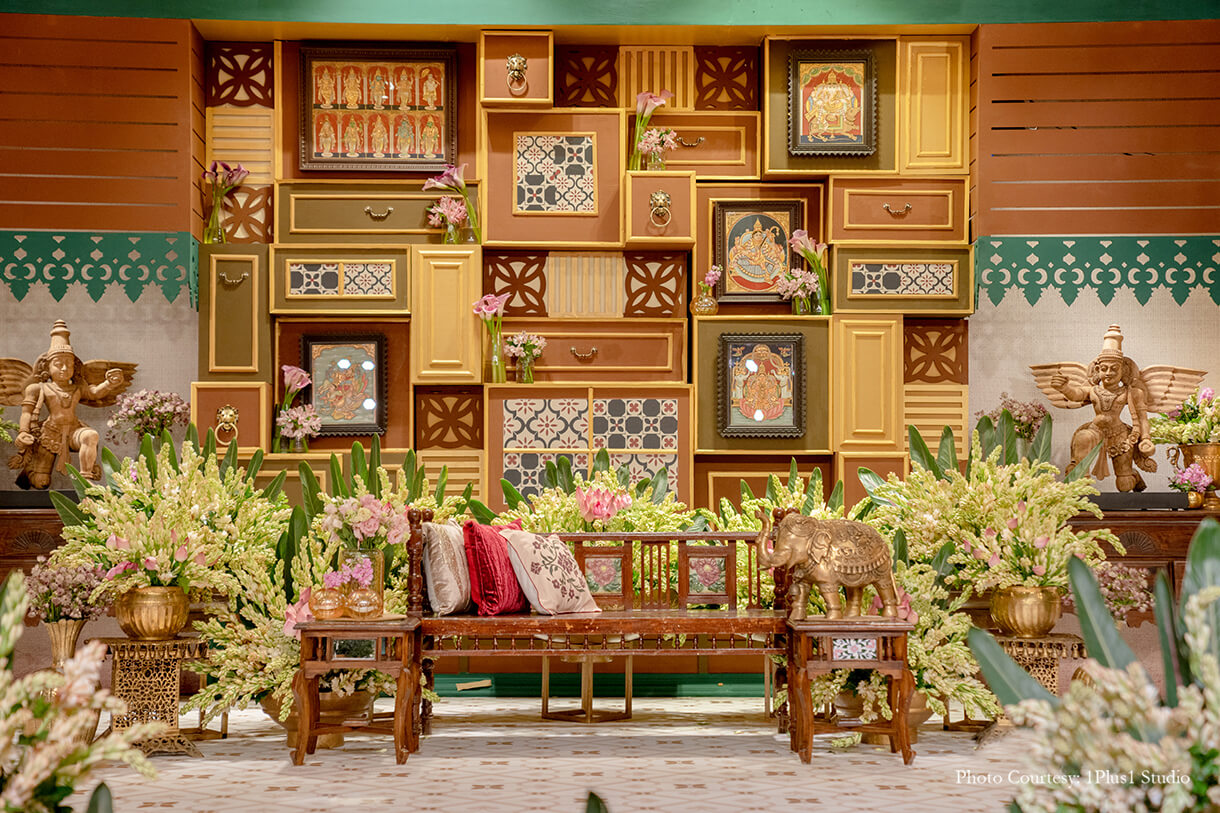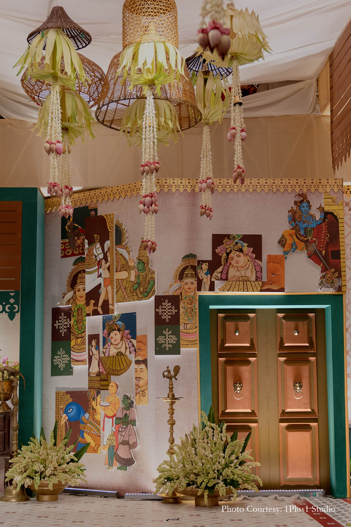 Inspired by traditional Tanjore art, this couple’s engagement celebration was luxurious and inventive!