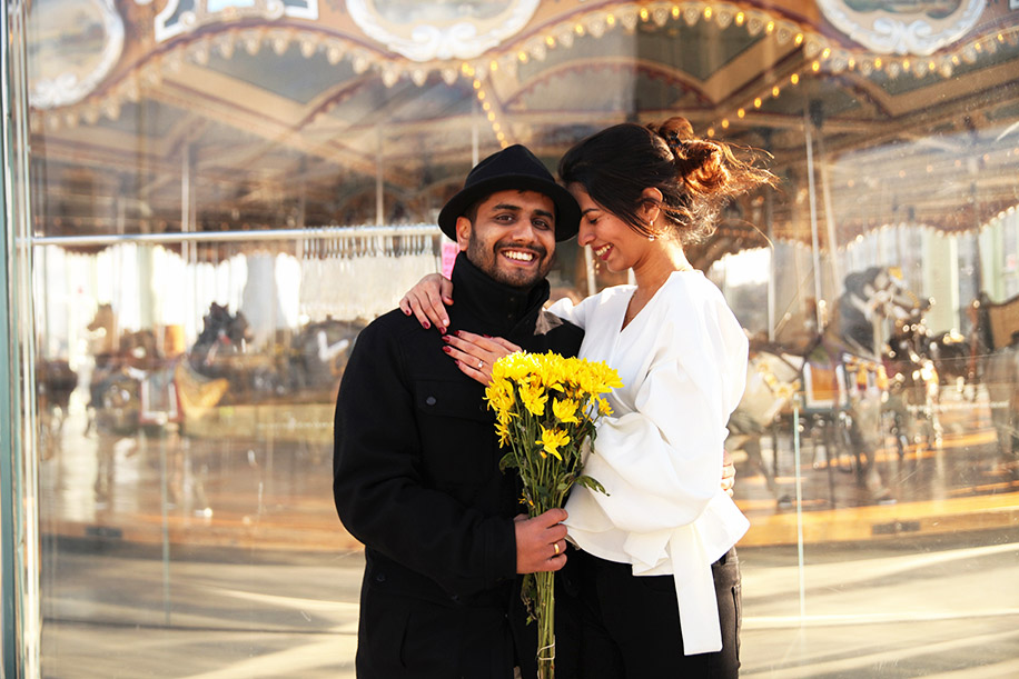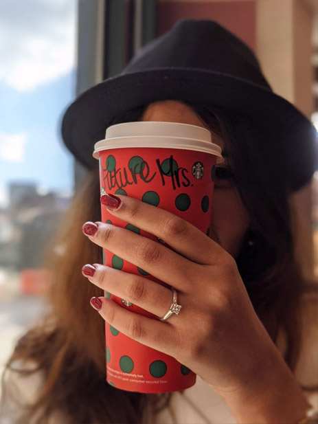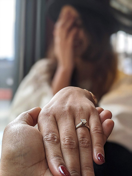 Ketki blushingly shares, “Through all these months we managed the time difference, odd hour calls, kept each other updated with our lives and got our families on the same page. A couple of trips to and fro, and finally, the most amazing trip to New York happened. I was traveling for work, and he scheduled his office work accordingly around Thanksgiving to spend time with me. He took me out early in the morning for a special surprise at an undisclosed location. As soon as we reached the beautiful Brooklyn Bridge, with a bouquet of my favorite flowers in one hand and ring in the other, he got down on one knee against the stunning backdrop, and I had to say an emphatic yes!”