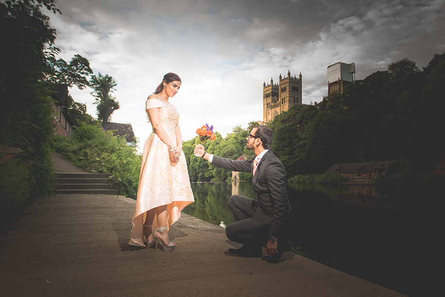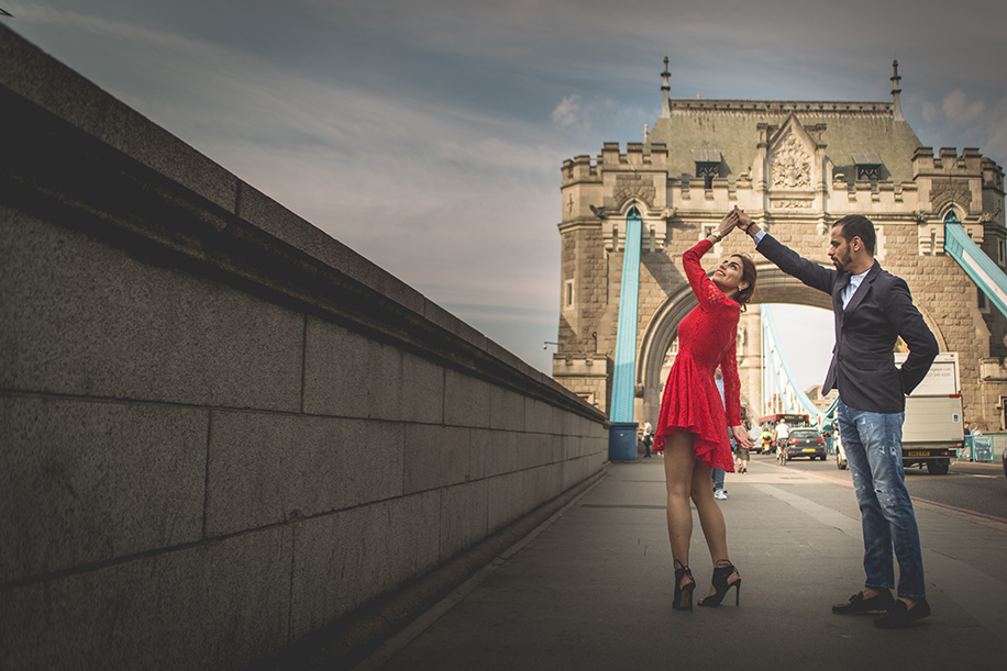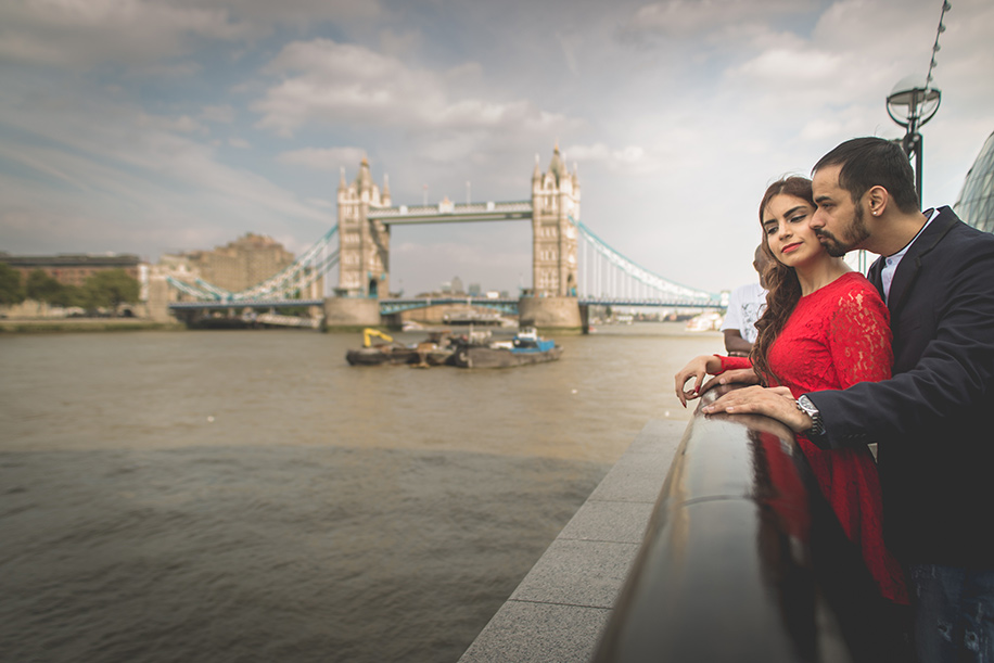 “At first, we had planned a pre-wedding photoshoot in India since we were both really impressed by pictures we had seen online. However, my brother-in-law suggested that we make the most of our European surroundings and shoot in Newcastle. This led us to research places and contact some photographers in our area. We found Stephen Beecroft’s work to be quite interesting. We shared some pre-wedding shoot pictures with him, and also briefed him about our idea of having a contemporary pre-wedding photoshoot without the usual mush involved. To be honest, we weren’t too sure if Stephen would be able to meet our requirements, as he hadn’t worked on pre-wedding shoots in his career. So we decided to go local and shoot just in the quayside of Newcastle and amidst the magnificent castles of Durham. When we finally saw the pictures, we were amazed and did another shoot in the glitzy surroundings of London. We shot at the Tower Bridge, Big Ben and London Bridge, which was very enjoyable. Stephen even suggested that since we had covered city (London), castles (Durham), quayside (riverside), we should finish off with a beachside photo shoot. Our shoot at the beautiful Blyth beach had a very tropical vibe and was a fitting end to our dreamy photo shoot sessions.”