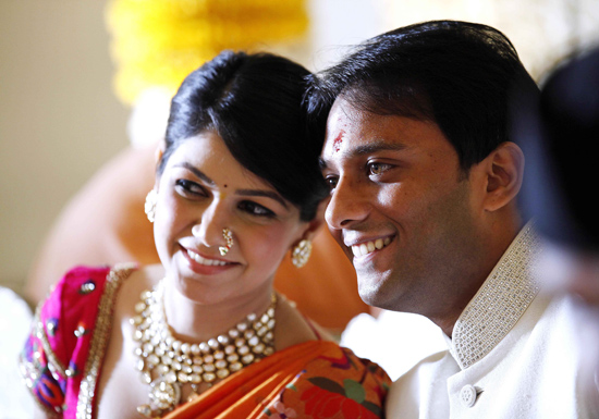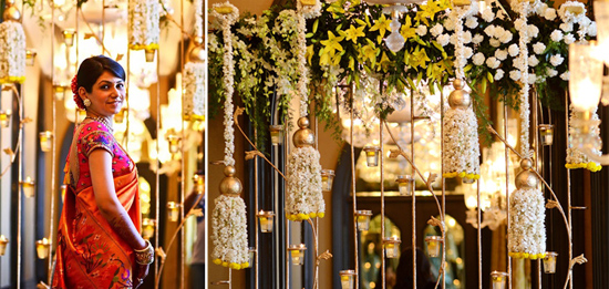 The wedding and the reception were held at the Taj Mahal Palace, Colaba. The wedding was a traditional Maharashtrian affair, the decor in shades of white, yellow and gold to blend with the rich & royal interiors of the Taj Ballroom. Since Anuja loves candles, the decor featured tea light grids at the entrance and as the backdrop for the mandap. The reception decor was Victorian, with flowers like orchids & Thai roses, and lanterns and crystals with mood lighting for a very romantic feel. Champagne with strawberries were served to all guests to celebrate the union. Wedding celebrations over, it was now time for the newly-weds to head to Krabi islands for their honeymoon.