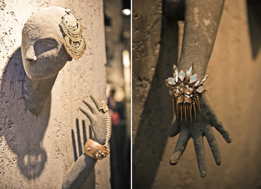 The same attention to detail and artistic grandeur is visible in the brand’s flagship store in posh Defence Colony in New Delhi with its sleek glass displays and copper-toned handcrafted structures that showcase one of a kind items like timeless masterpieces.