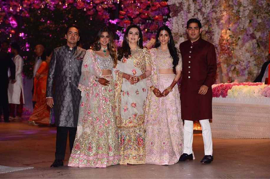 In June 2018, Akash and Shloka got engaged at an elegant ceremony in their iconic family home called Antilia at Altamonte Road, Mumbai. Bollywood star Shahrukh Khan was the host at the event which was attended by many Bollywood stars, political heavyweights, business contacts and friends. Nita Ambani performed a solo dance at the engagement, as she also did at Isha’s pre-wedding events in Udaipur.
